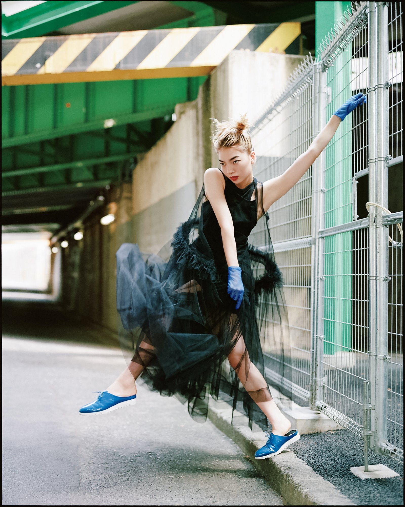 アオイヤマダの目に飛び込んできた鮮やかなブルー。毎朝、服を選ぶ時に、必ず“今日の色” が頭に浮かぶという彼女は、ある日、晴天のようなクリアな青と白のカラーリングの「オクス フォード サボ」と心がつながった。