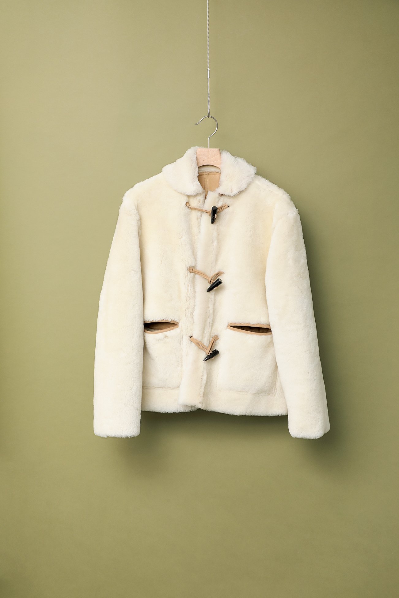 ヴィンテージのミリタリーショートダッフルをムートンで再解釈。イタリアMOTTA社でなめされたムートンを使用し、熟練の職人によって革の裁断から縫製までを手がけた逸品。たび重なる試作の末、撥水加工も施している。毛皮とレザーのリバーシブル仕様で、毛皮面は視覚的にも体感的にもかなり暖か。¥242,000(税込)/シーオール(シーオール https://seeall.jp