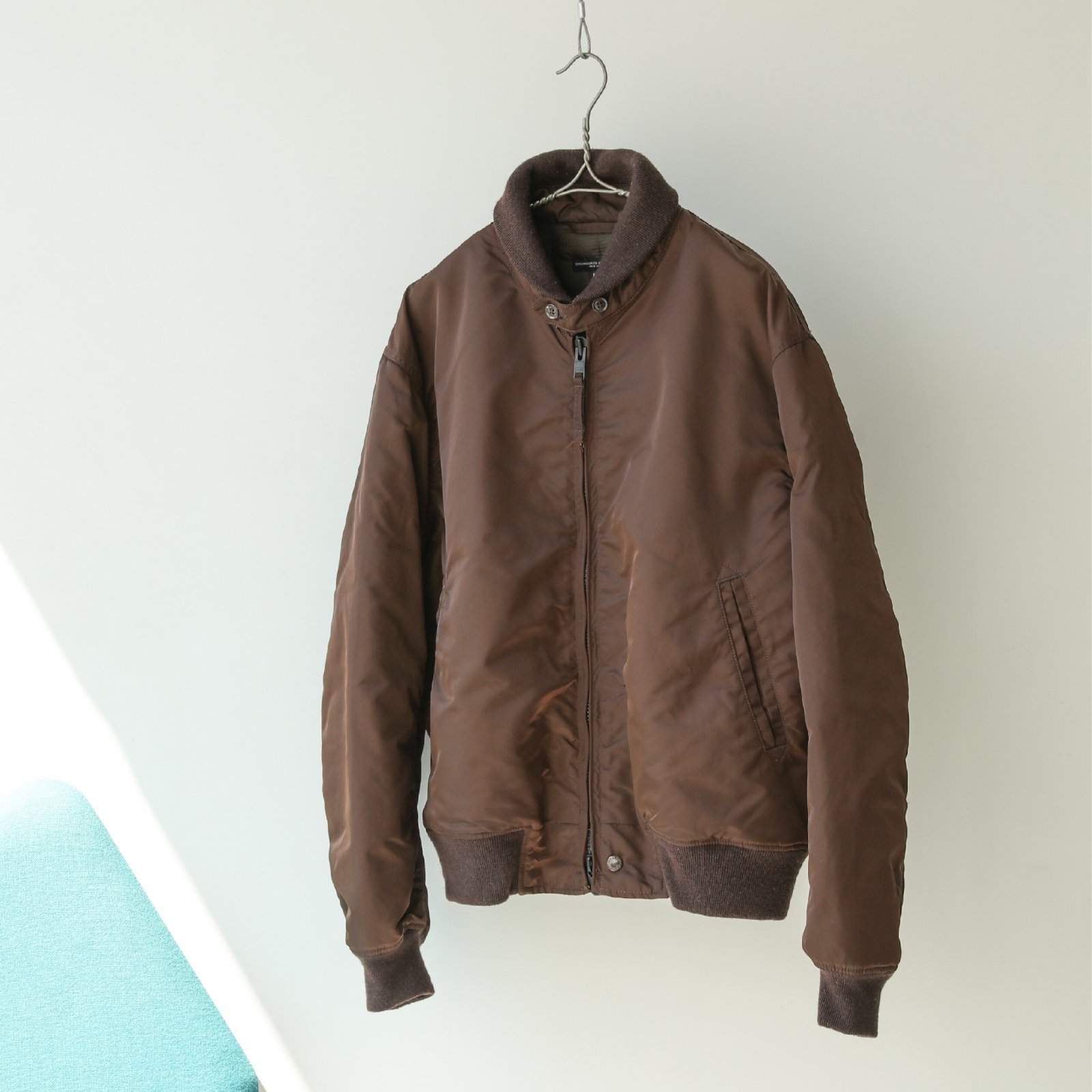 人気のミリタリーアイテムのひとつ、フライトジャケット。定番はオリーブカラーだが、そこであえてブラウンを選ぶのが洒脱な選択だ。