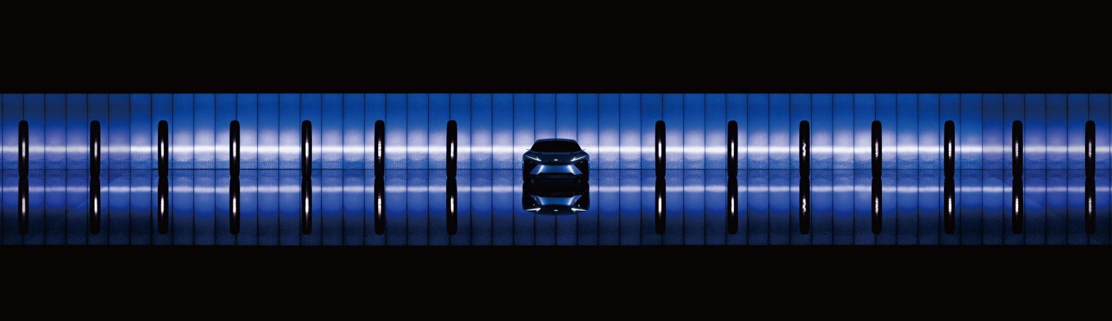 会場の中心にはレクサスの次世代バッテリーEVコンセプト「LF-ZC」が置かれ、さらに人の動きに光と音で応える10体のスカルプチャーが一列に並ぶ。壁面の光は日の出から日没のように移り変わり、さらに渋谷の電子音楽が重なり合う。渋谷はこう語る。