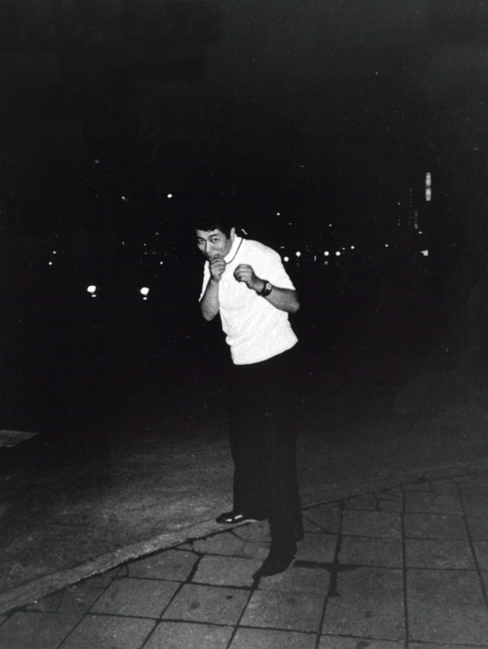 渋谷に落成した天井棧敷館の前で(1969年)©テラヤマ・ワールド