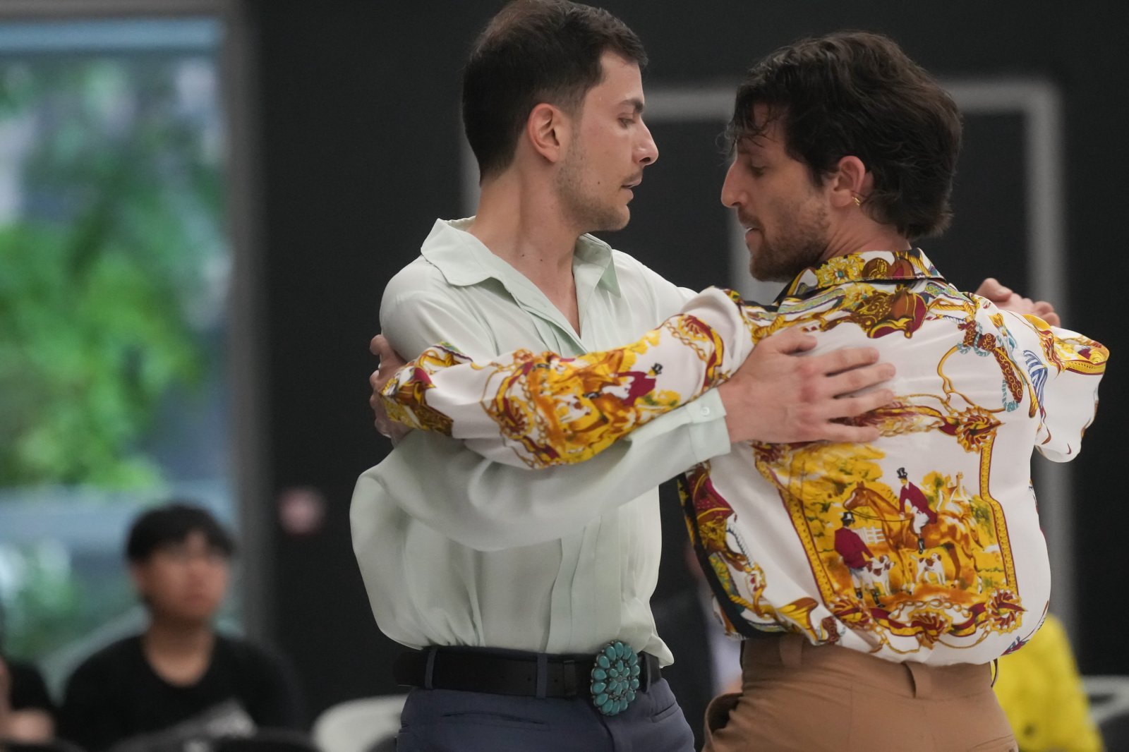 シャッローニが、今作『ラストダンスは私に』(19年初演)の題材「ポルカ・キナータ」に惹きつけられたのはそんな流れだ。彼は、ボローニャに残るこの求愛ダンスで、踊り手のふたりが高速旋回しつつも(肉体的にはきついはずなのに)微笑み出す時を愛おしむ。スイッチの入った瞬間だろうか。