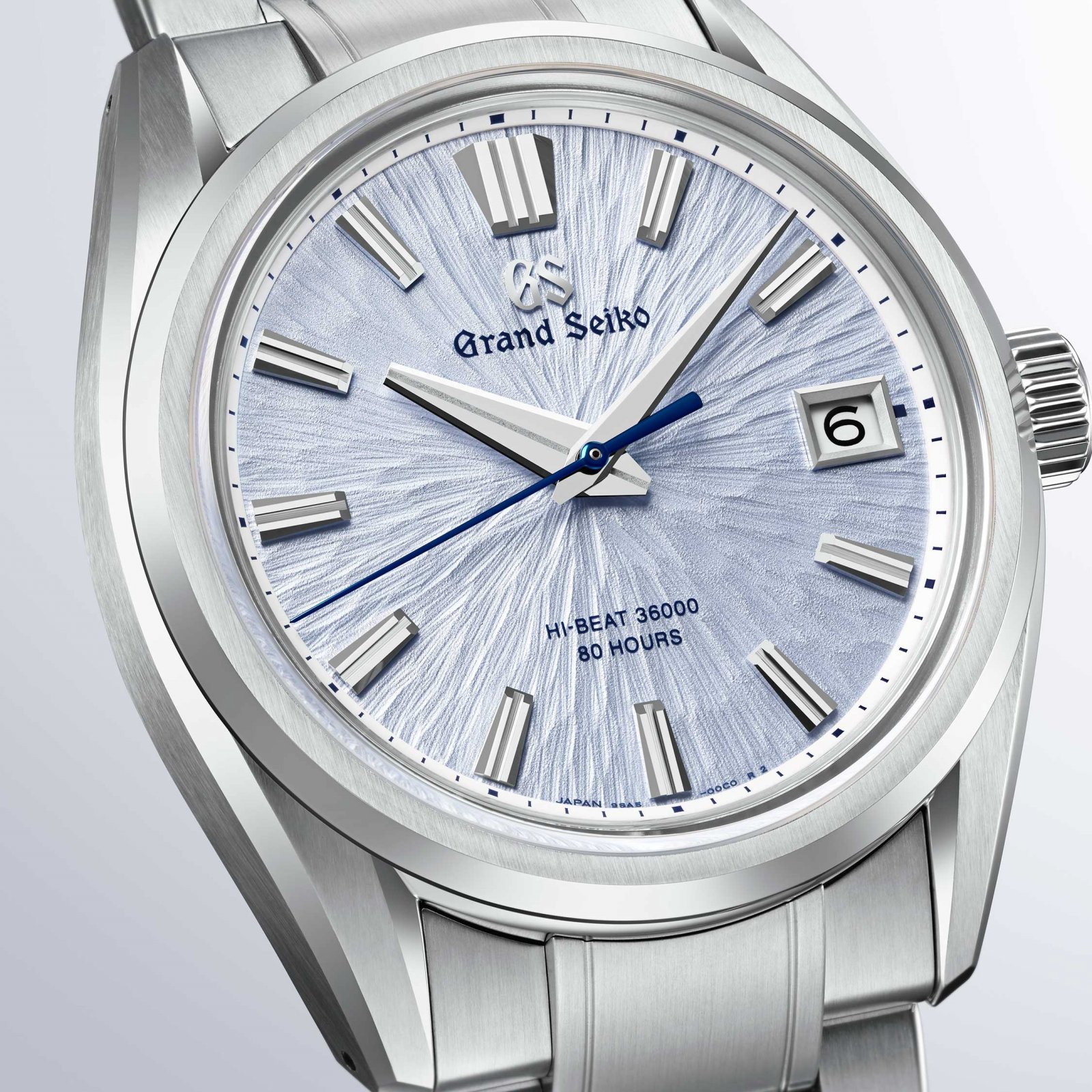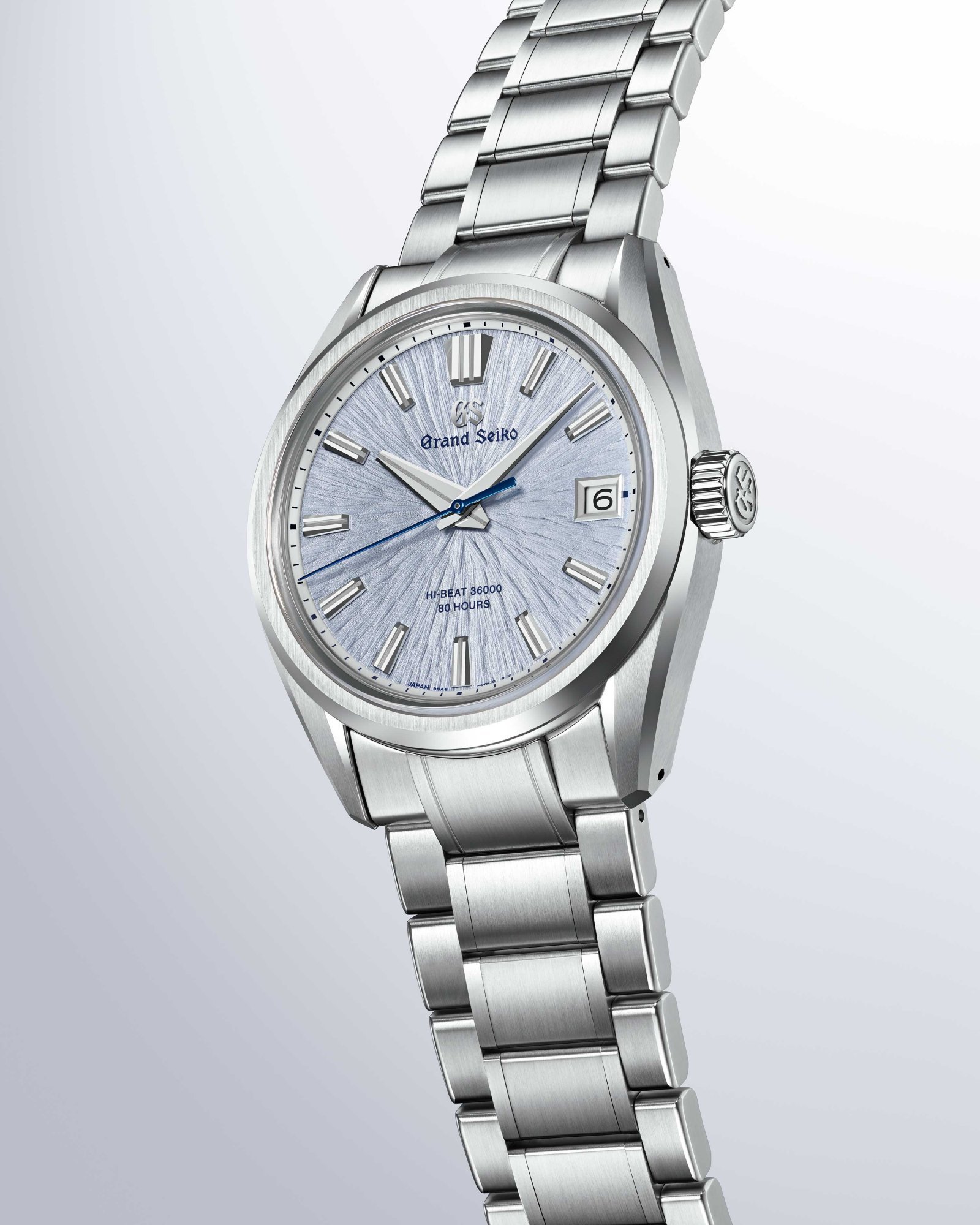 グランドセイコーの「エボリューション9コレクション」に登場したのは、ダイヤルに岩手山を表現した魅力的な限定モデルである。グランドセイコーのメカニカルモデルの製造を担う「グランドセイコースタジオ 雫石」は、 勇壮な岩手山を臨む地にある。グランドセイコーの聖地から見上げるその山を新作ではあえて鳥瞰で眺め、尾根筋から着想を得た放射状のパターンを施す、新しい「岩手山」ダイヤルを創作した。ダイナミックな稜線が浮かび上がるダイヤルのカラーは“クリアブルー”。山を包み込む静澄な空気と水の心象をイメージさせる。
