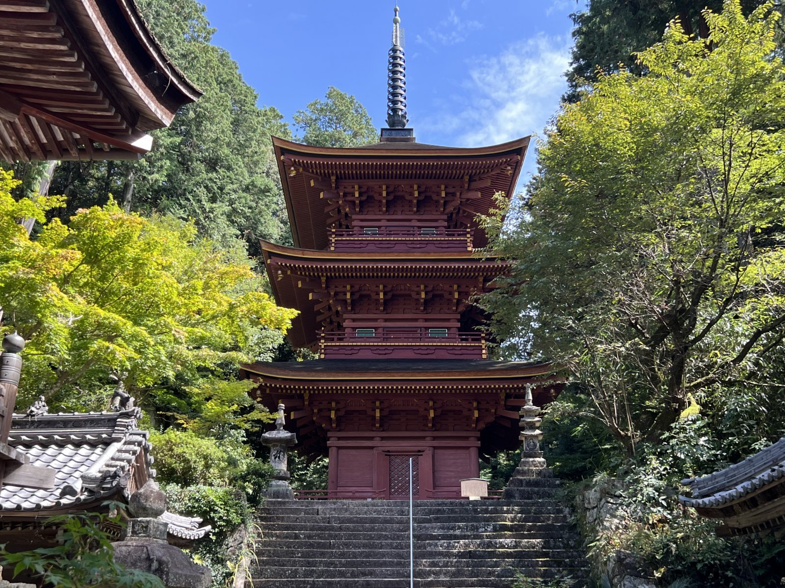 まち歩きとともに「近江八幡旧市街地」エリアの展示を楽しんだ後は、「小幡町資料館前」よりバスで約20分ほどの「長命寺」エリアへと向かおう。7世紀、推古天皇の時代に創建されたと伝えられる長命寺は、西国三十三所第31番札所として知られる天台宗の由緒ある寺院。湖岸のそばから808段の長い石段を登ると、標高約250mの山腹に、本堂や三重塔などの重要文化財の建物が立ち並んでいる。