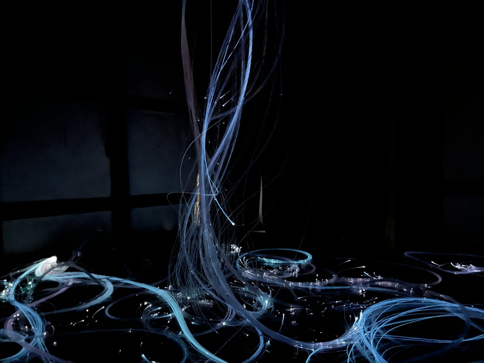 アート、サウンド、デザインなどジャンルを超えた作品を制作する、サークルサイドのインスタレーションにも見惚れてしまう。これは薄く丸めた和紙を開き、プロジェクターにて光を当てたもので、湧き出たり吸い込まれていくような光の軌跡を楽しむことができる。なおタイトルの『Re:undercurrent』とは、表面には現れない心の底の感情が水面下に流れるように存在する「底流」を意味している。