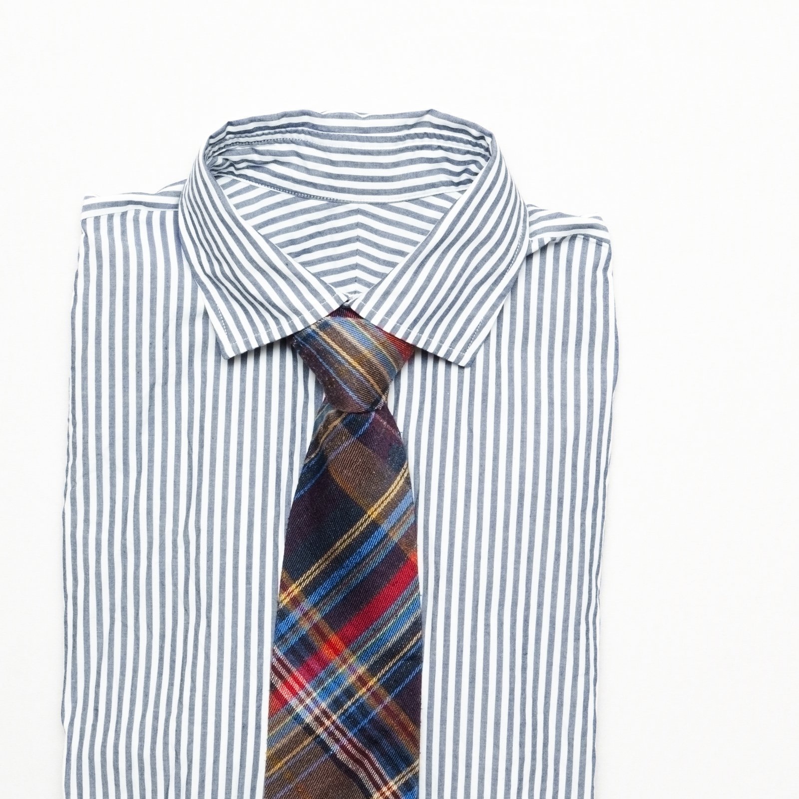 ネクタイの結び目は左右で2回輪をくぐらせ、結び目を大きくする「ウィンザーノット」がベスト。きつく絞らずゆるめに巻こう。さらにネクタイの幅も太めにしたいところだが、ビジネスシーンだと野暮ったい装いになる懸念もある。「細いネクタイだけは避ける」くらいの温度がちょうどよさそうだ。