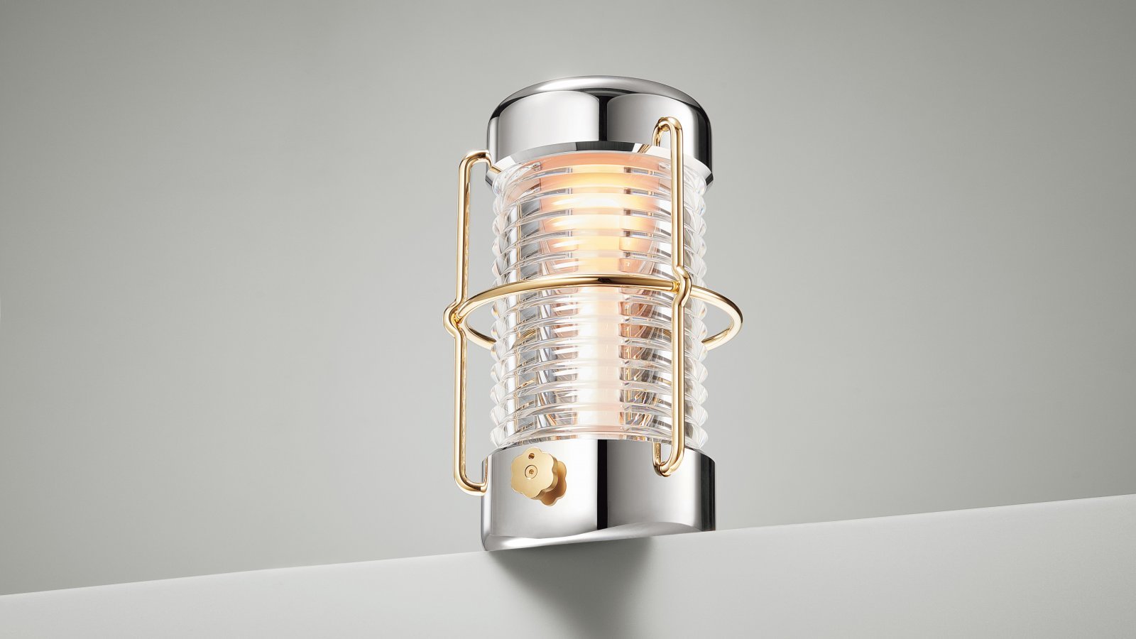 重厚なステンレス製の本体は、高級腕時計のケースのごとく歪みのない鏡面仕上げ。光を拡散させるガラスも宝石のように精密に加工され、息を呑む美しさだ。片手でどこにでも動かせるランタンでありながら、それを置いた空間全体を優しく包み込むような存在感、そして温かい光を放つ。