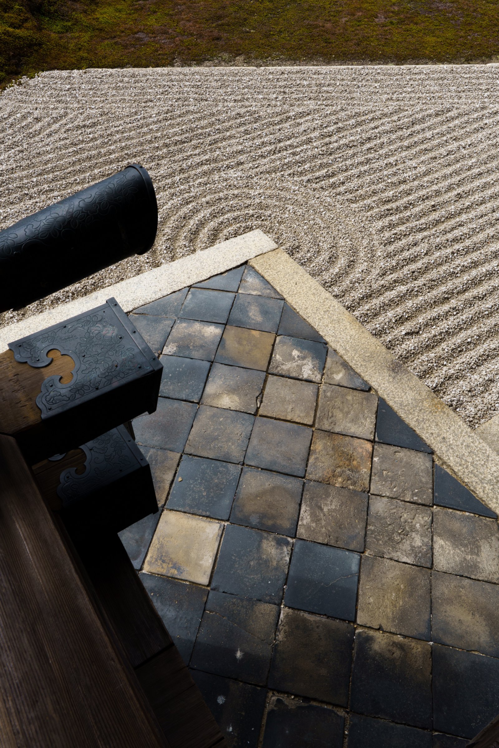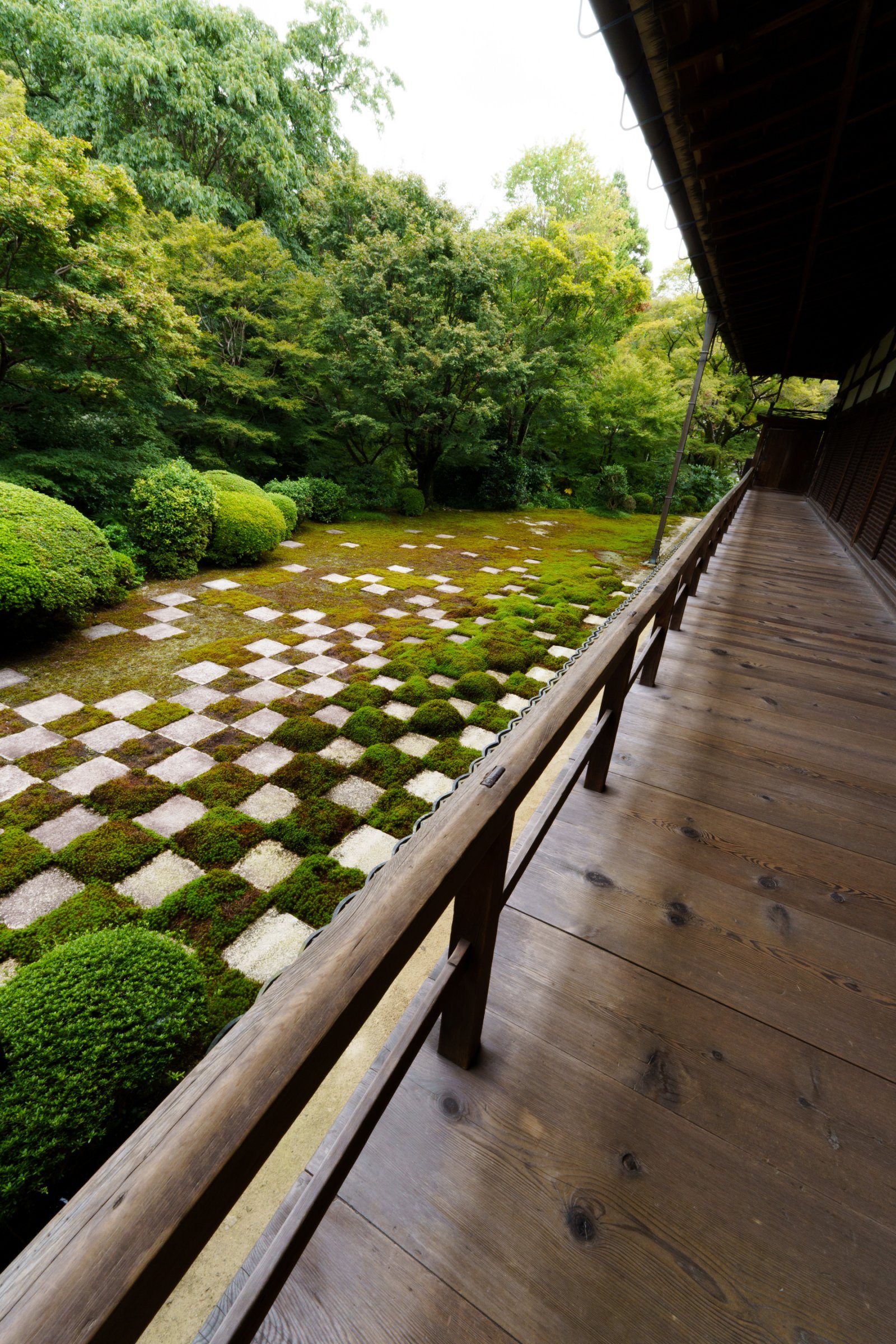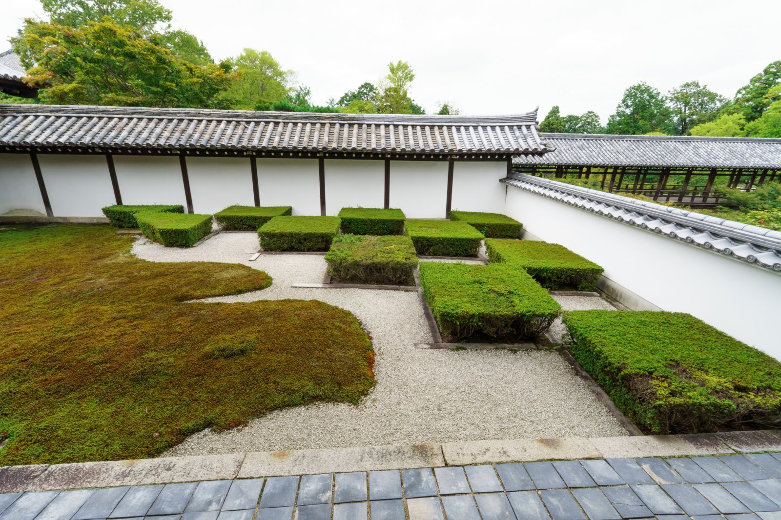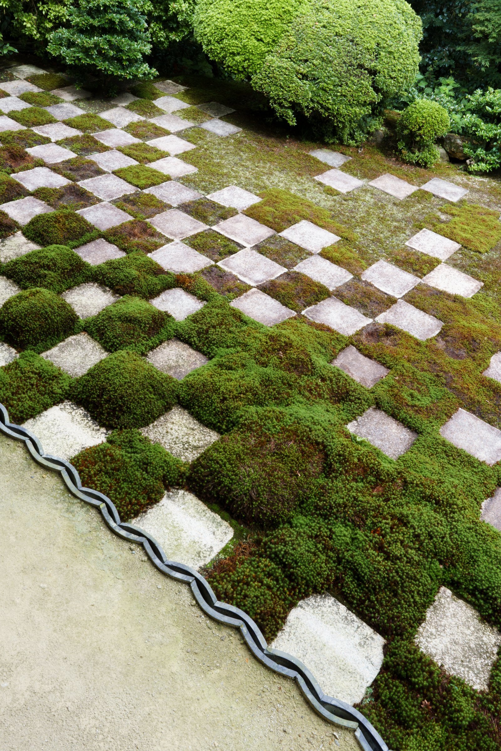市松模様の苔庭は「北」。