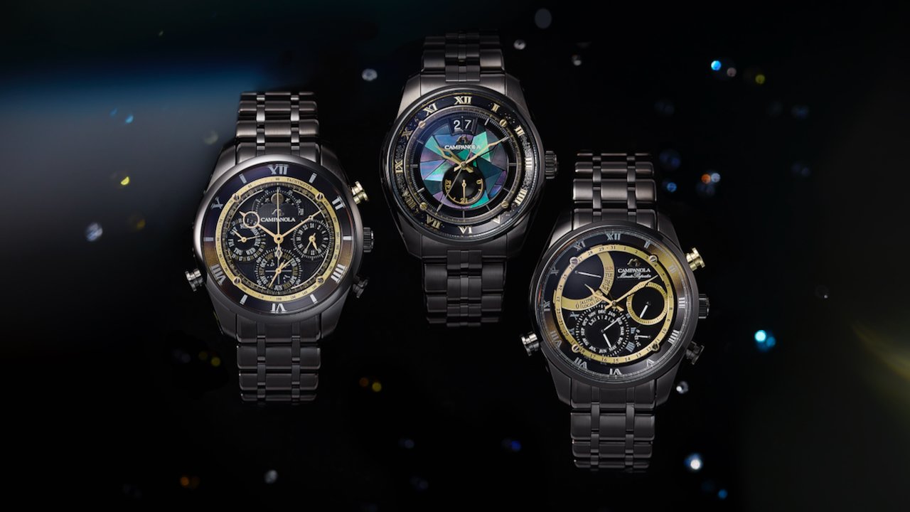 漆黒の外装に金の輝きが浮かぶ腕時計が、静かに時を刻んでいる。カンパノラが25周年を迎え、「星響(ほしのひびき)」と名付けられた限定モデル3本を発表した。星々が響き合う宇宙をテーマに、ブランド初となるデュラテクトDLCを施したオールブラックのケースとバンドを採用。宙空の神秘を手首に宿す姿は、ブランドが掲げてきた精神そのものだ。2000年の誕生以来、「雄大な宙に想いを馳せ、今という時を愉しむ」という理念を軸に歩んできたカンパノラにとって、その思想がひとつのかたちになったと言える。