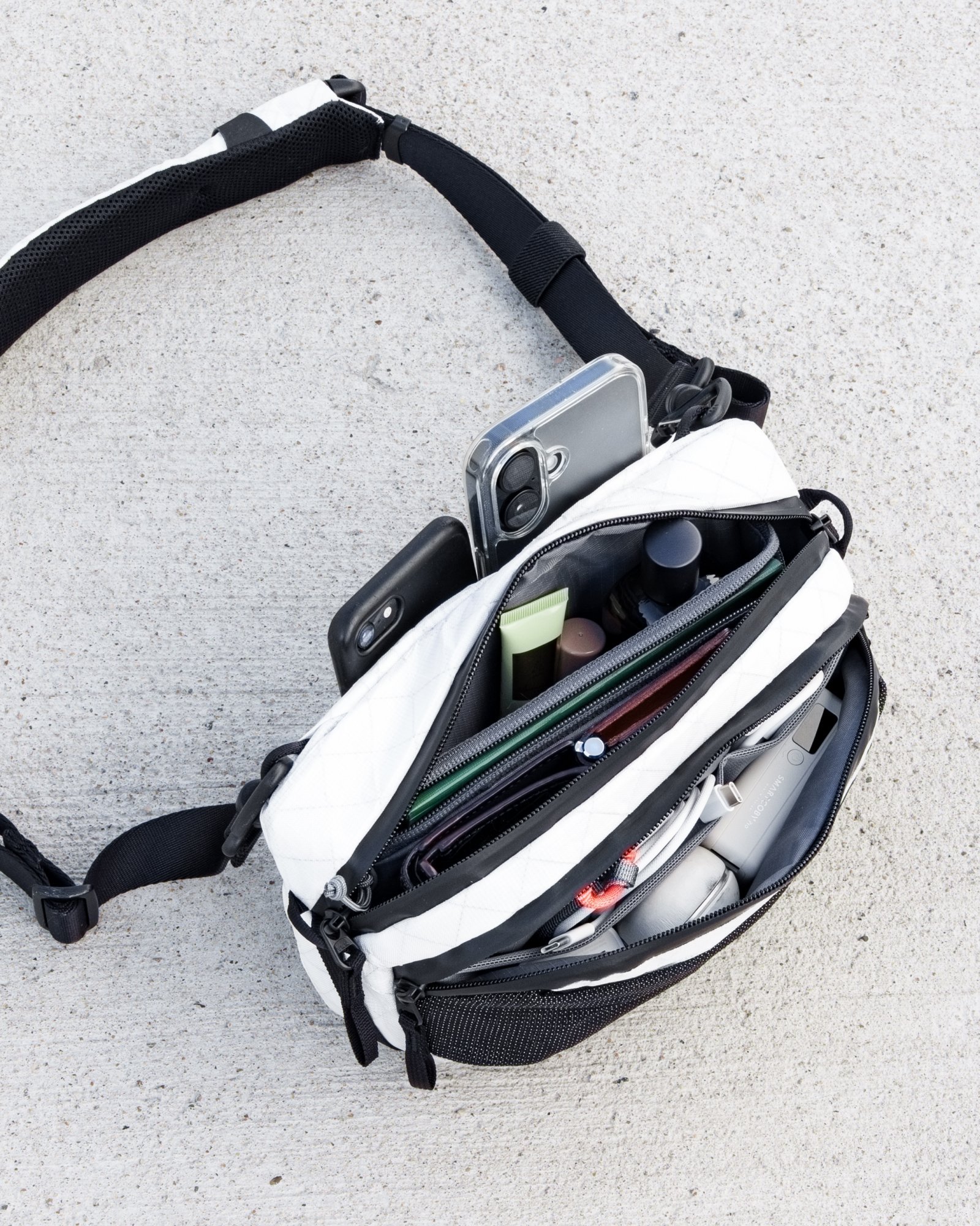 一方で一眼カメラのように分厚く形が複雑なアイテムは収めにくいようだ。あくまでもメインバッグのサブとして、生活必需品を持ち歩く役割に特化させよう。