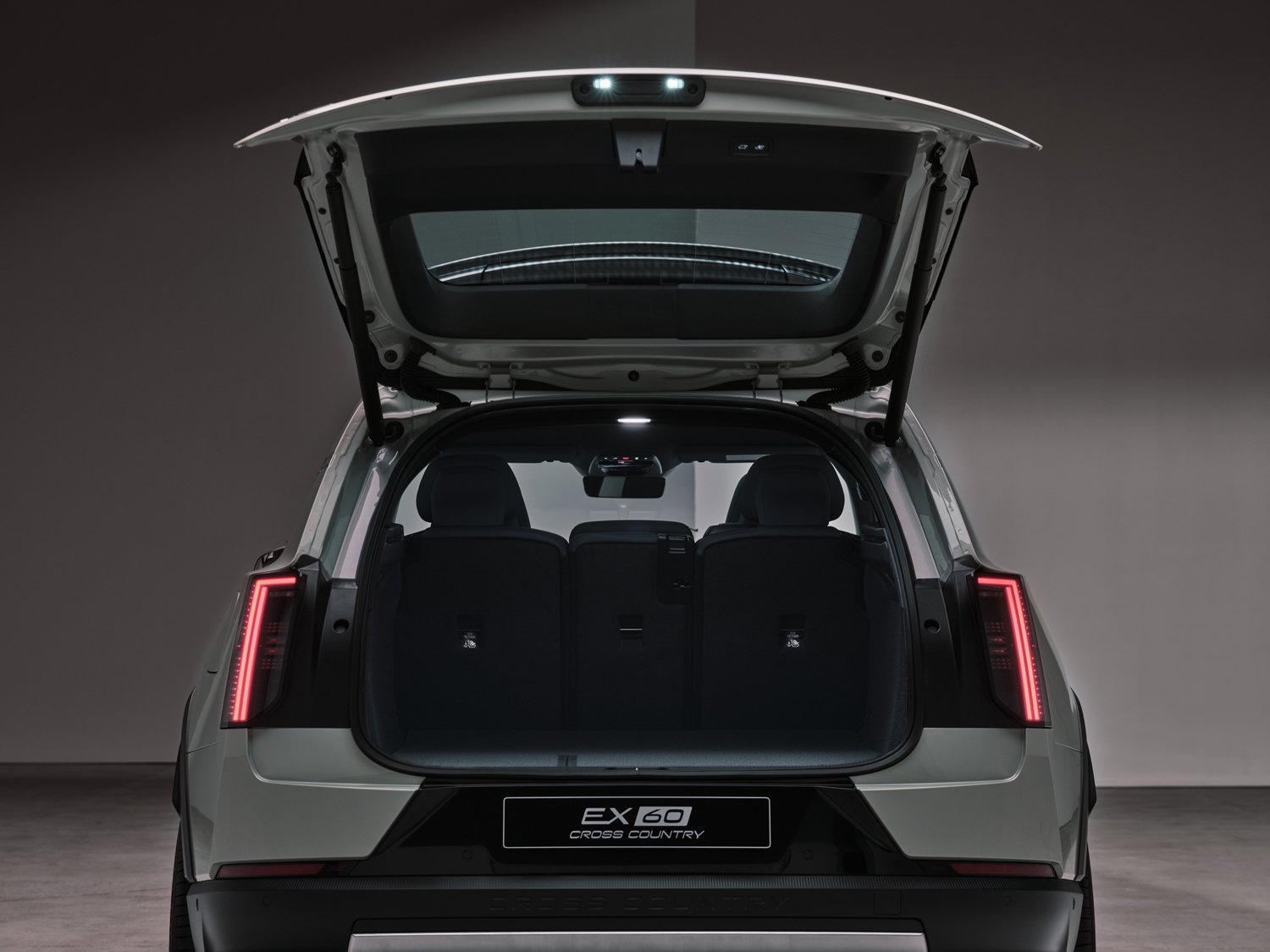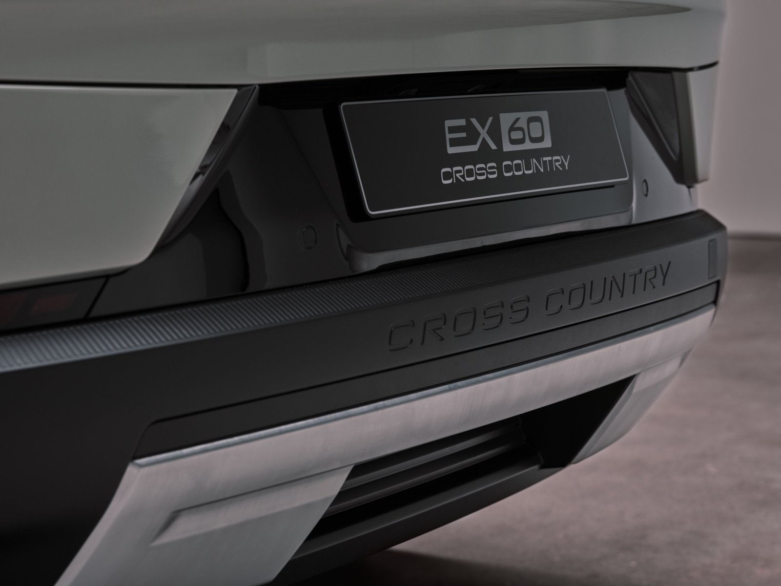 「EX60 クロスカントリー」には専用のデザインディテールが随所に施されているほか、クロスカントリー専用デザインのホイールも装備。さらに、フロントとリアに配されたブラッシュド仕上げのステンレス製スキッドプレートが力強さを際立たせ、ワイドでタフなホイールアーチが存在感を一層高めている。