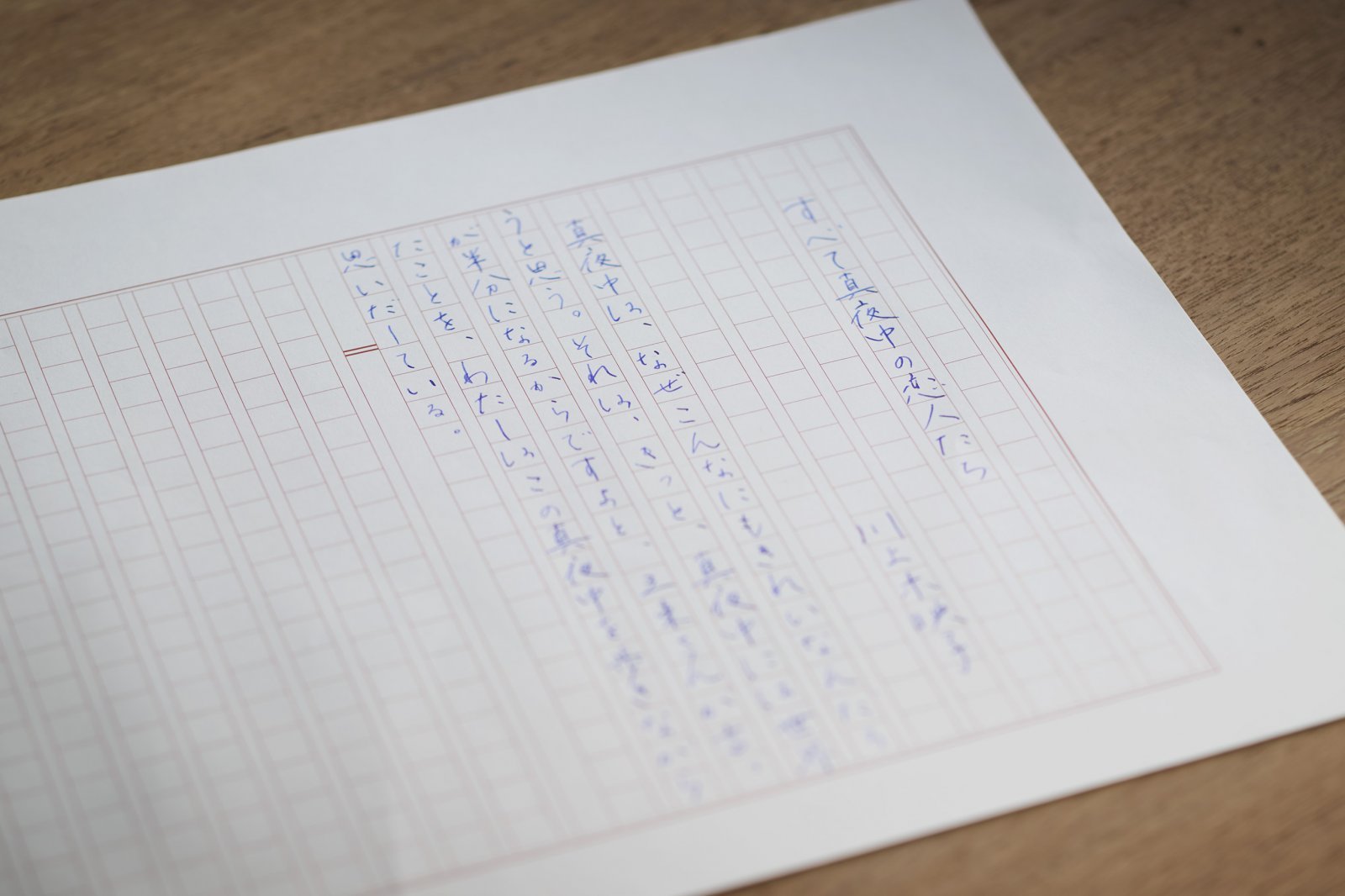 ペンと紙が触れ合う音が静かに響く。一画一画に意識を込めながら、ゆっくりと文字を紡いでいく。その姿からは、手書きという行為への深い敬意が感じられた。