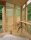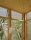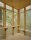 家を支えるのは、3 本の木を支柱とした三角形の基盤。その上に、基盤からずらすように回転させた三角柱のような建物がデザインされた。外装には木材と半透明のポリカーボネートパネルを使用しており、建物の三面すべてが開閉可能だ。夏には森の涼しさが室内に取り込まれ、木々がひさしとなって日陰をつくる。寒い季節には、太陽光を通すポリカーボネートが家の中を暖めるという。床下にはベッドが設置され、4 枚の木製パネルをはずすことで使用することが できる。それ以外で室内に据え付けられたのは、ベンチと机の役割をする 2 枚の板のみ。小さな部屋は空っぽに見えるが、限られた空間を最大限に活用した無駄のないつくりになっている。