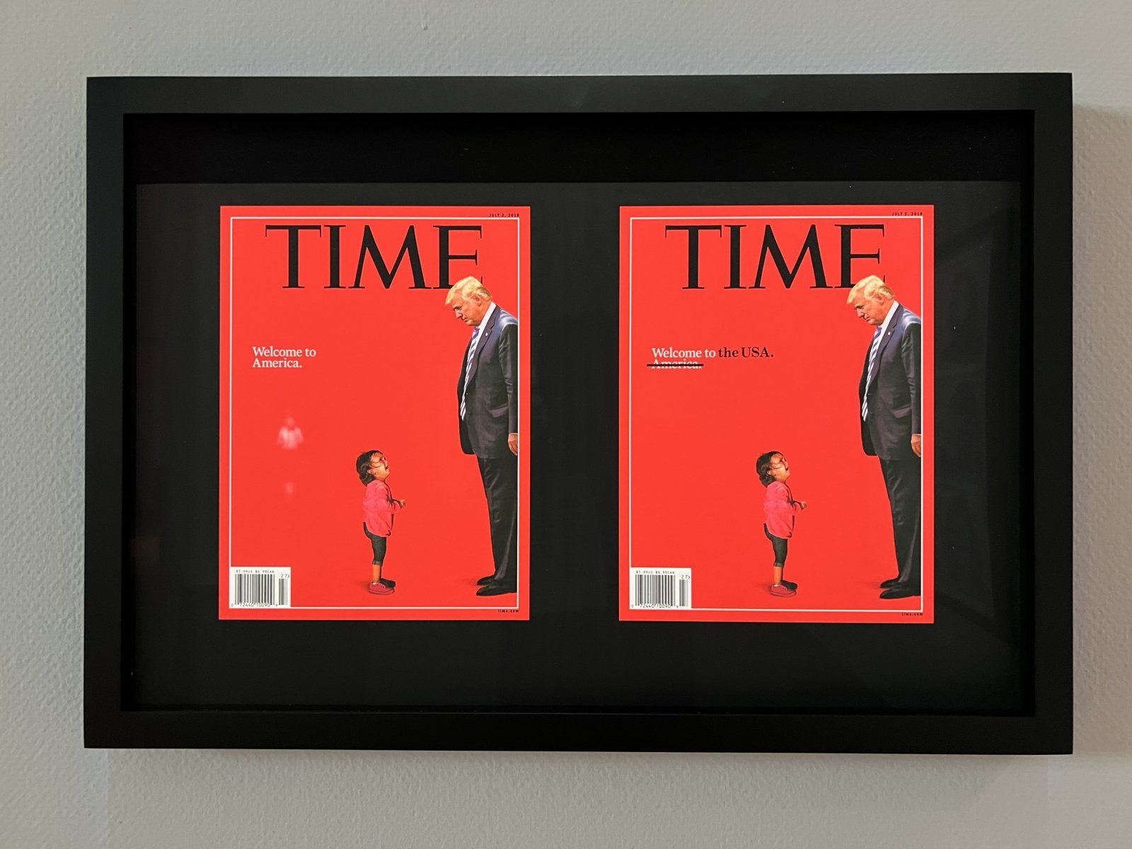 国境と認識をめぐる『アメリカのためのロゴ』とは、1987年にニューヨークのタイムズ・スクエアで上映された電子ビルボート作品に基づくもの。アメリカ合衆国の地図や「THIS IS NOT AMERICA(これはアメリカでない)」などの文字が現れ、やがて「AMERICA」と記された大陸全体の輪郭へと変化していく。そこに「アメリカという言葉は合衆国一国を指すものではなく、南北アメリカ大陸全体を意味している」というジャーのメッセージが垣間見える。