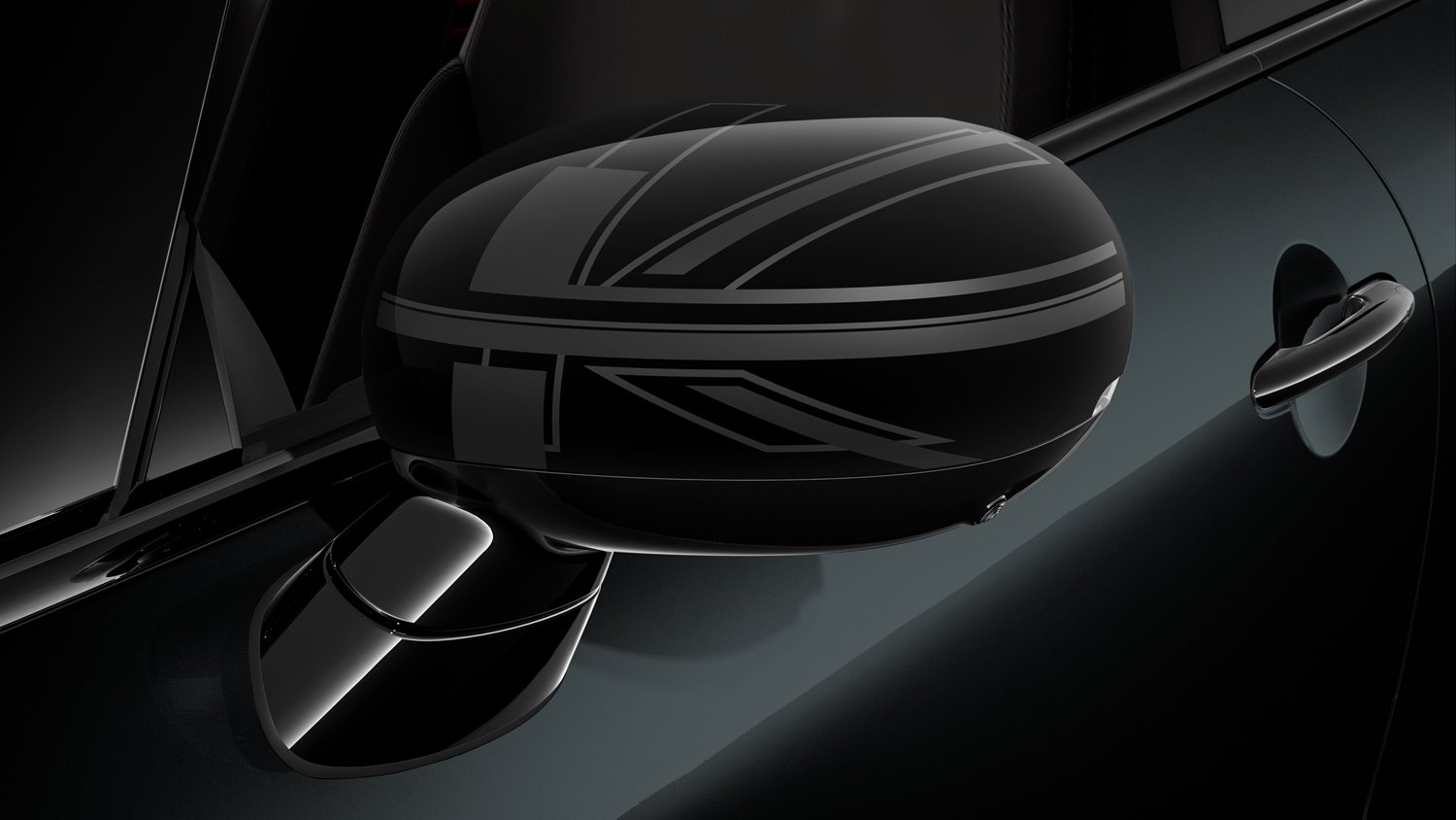 エクステリア、インテリアともにブラックとグレーのダークカラーで統一し、都会的でシックな印象に。ユニオン・ジャックをモチーフとしたヘリテージ・ミラー・キャップがミニらしさを表現する。インテリアは、ベスキン・ブラック・シートを採用し、ダッシュボードやドア・トリムもすべてブラックで統一され、落ち着きのある上質なキャビンに仕上がっている。
