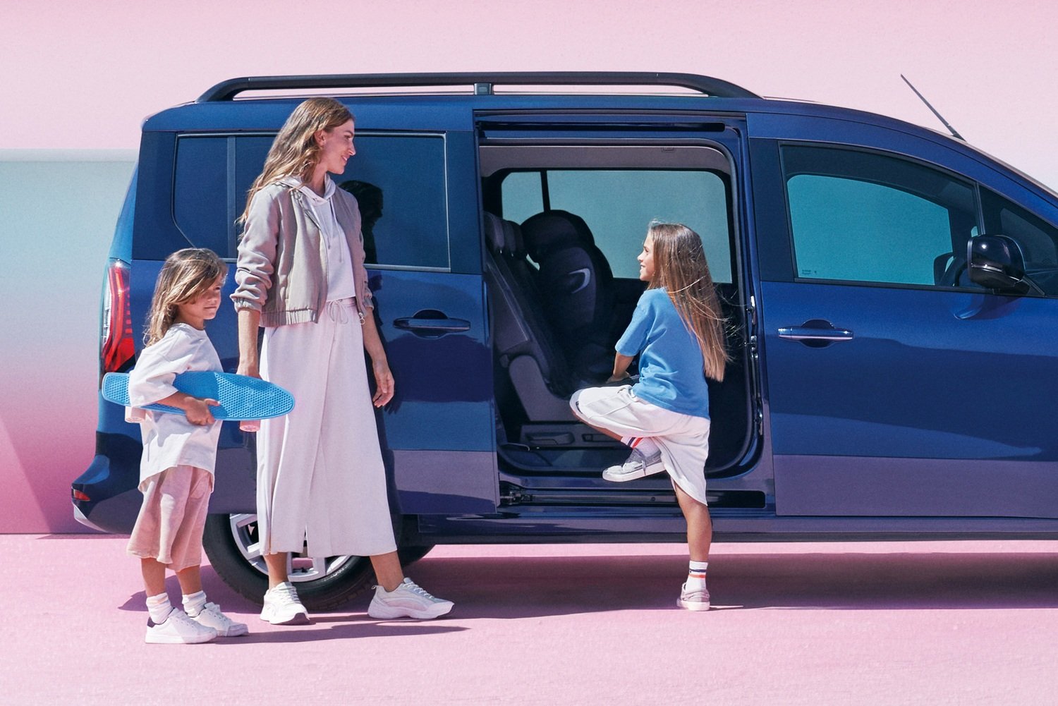 ルノー カングーに比べて全長420mm、ホイールベース390mm長くなり、拡大された室内には独立した3列/7シートを装備。ホイールベースの延長によってスライドドア部も新たに設計され、開口幅も180mm広い830mmとなったため、乗り降りが容易に行える。