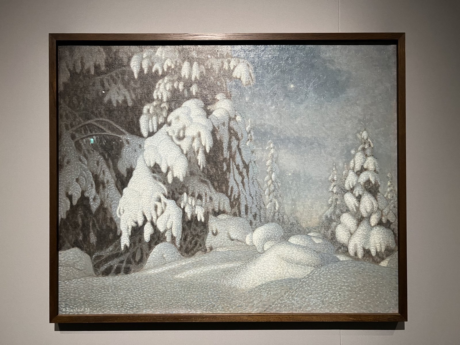 「グスタヴ・フィエースタードの『冬の月明かり』と『川辺の冬の夕暮れ』も好きですね。雪の質感や陰影の捉え方が非常に繊細で、どこかデザイン的な構成の味わいもあります。展覧会のハイライトを飾るにふさわしい作品と言えるでしょう」---fadeinPager---