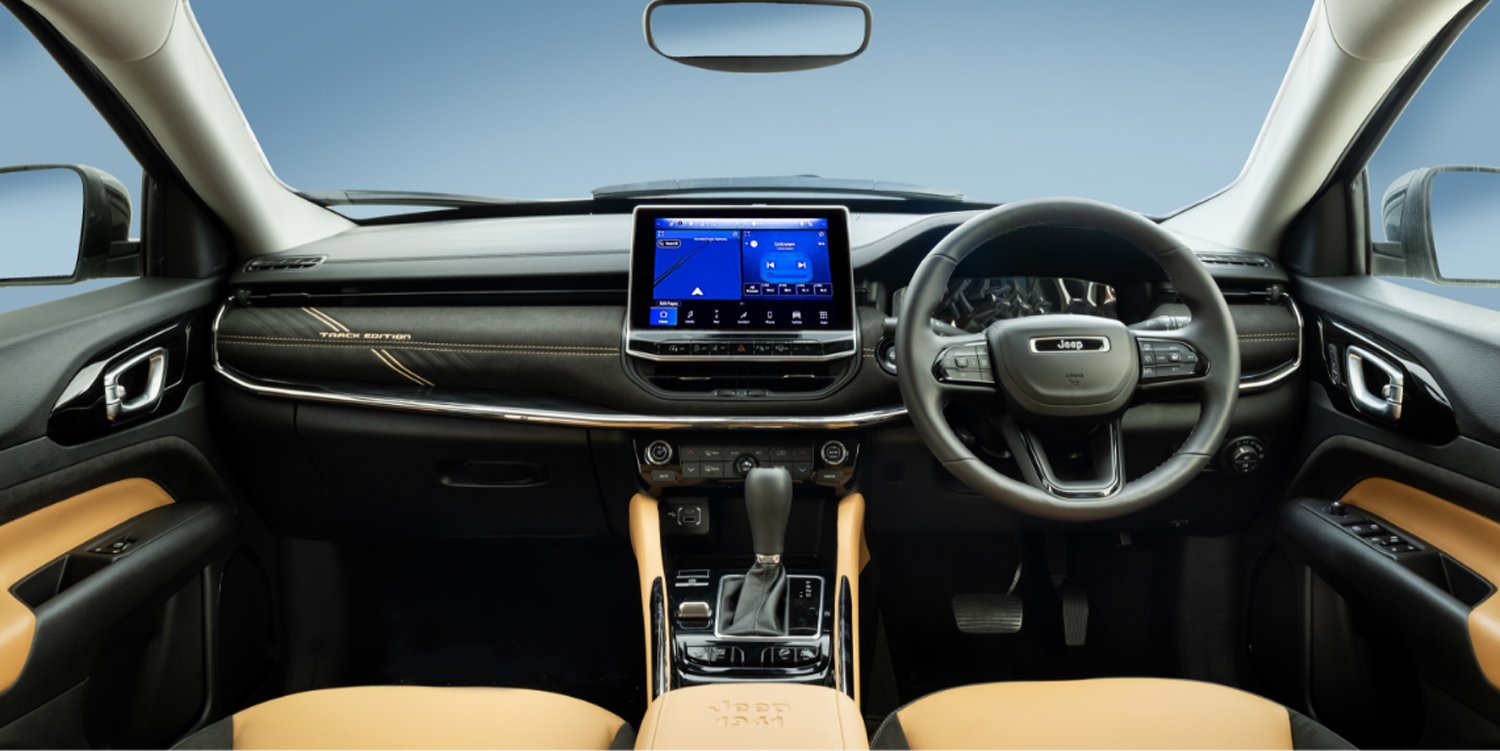 「ジープ コンパス トラックエディション」には、ブラックペイントルーフを採用。フロントシートにはベンチレーション機能が搭載され、季節を問わない快適なドライビング環境を提供する。