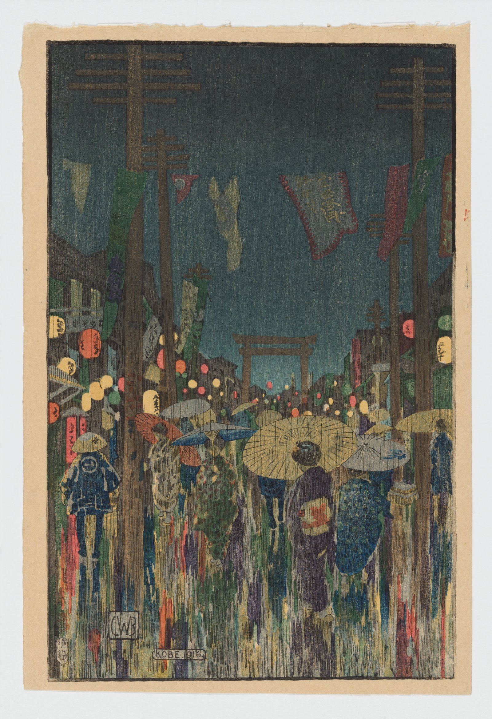 本展ではアメリカ・ワシントンD.C.にあるスミソニアン国立アジア美術館から、選りすぐりの浮世絵や新版画、写真など約130点を借用。またコレクターのミュラーが生涯をかけて蒐集したコレクションは質の高いことでも知られ、どの作品も時に水彩画と見紛うほどの鮮やかな色彩をたたえている。その清澄な光と影の表現を通して、近代の版画家たちによる「トワイライト」の美をあらためて実感したい。