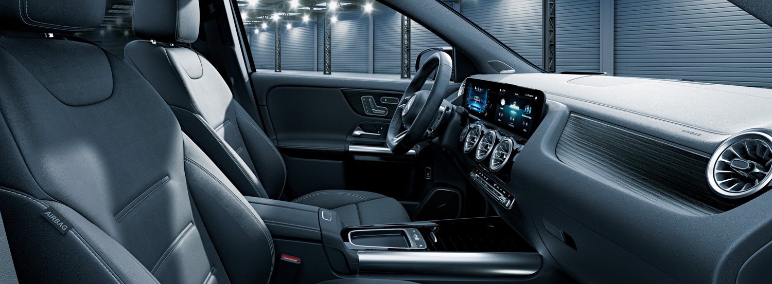 インテリアは、通常「GLA 35」に設定のないインテリアトリム「ブラックオープンポアウッドインテリアトリム」を採用し、本革の内装シートもブラックで統一した室内空間に。