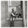 ベンチに座るボウイ。詳細は分からないが、庭に置かれた小屋の前で撮影された写真に見える。Photo courtesy of David Bowie Estate