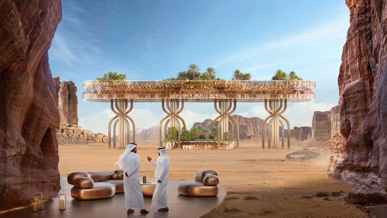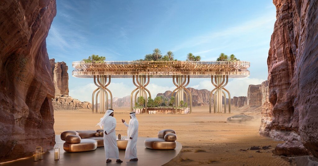 中東の砂漠地帯では近年、地形と一体化したラグジュアリーリゾートの構想が相次いでいる。