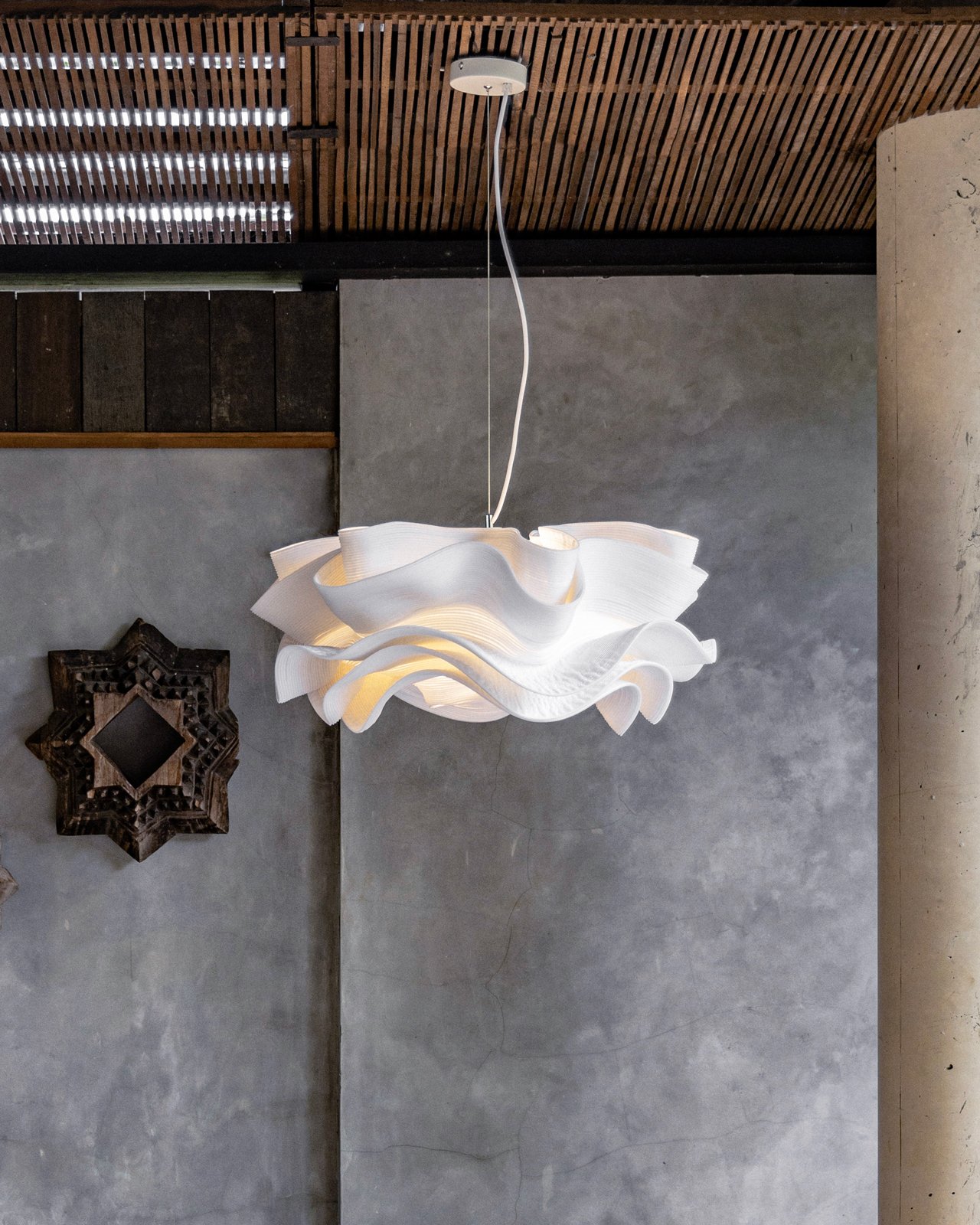 ファスナーをつなぎ合わせることで、複雑かつ有機的なフォルムを実現したオン・チェン・クアンの照明「Kelopak(クロパッ)」。