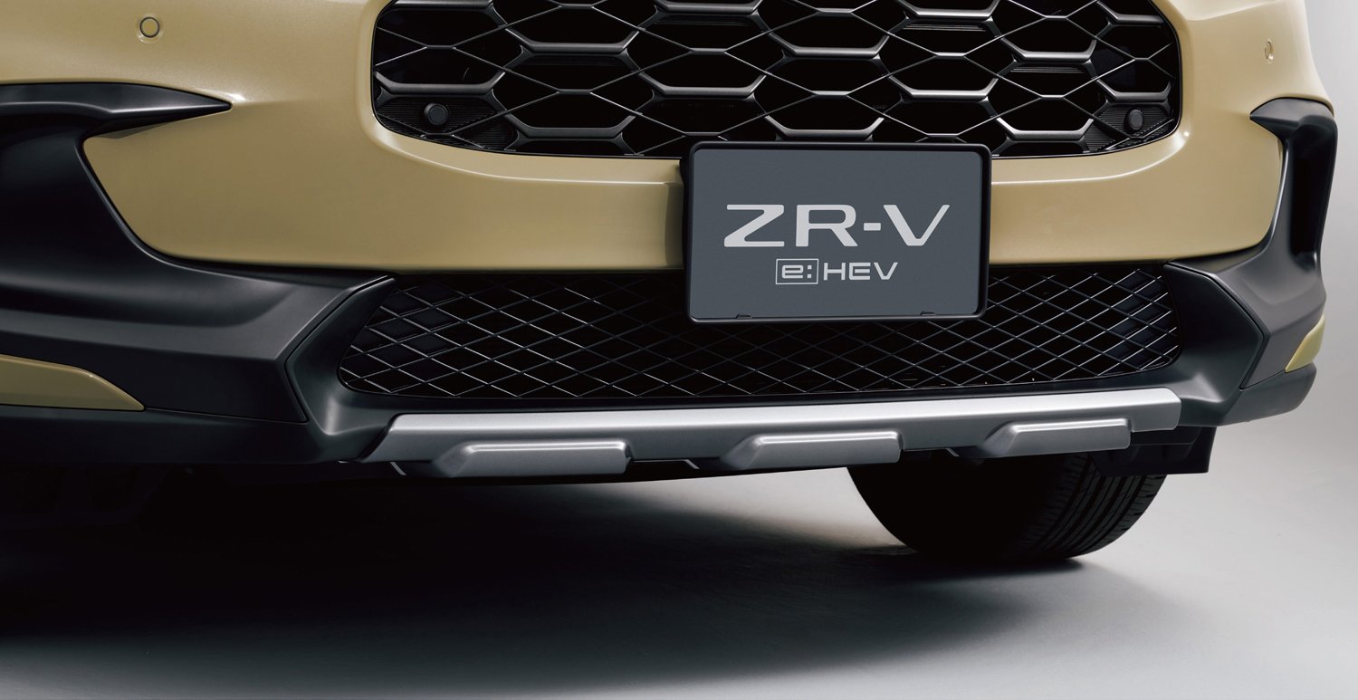 「ブラックスタイル」では、これまでのバーチカル・フロントグリルをハニカムパターン・フロントグリルに変更。フロントグリルやアルミホイール、シャークフィンアンテナなど、エクステリア各所にブラック基調の専用アイテムを採用したことで、「ZR-V」のスポーティーさと上質さをより際立たせている。