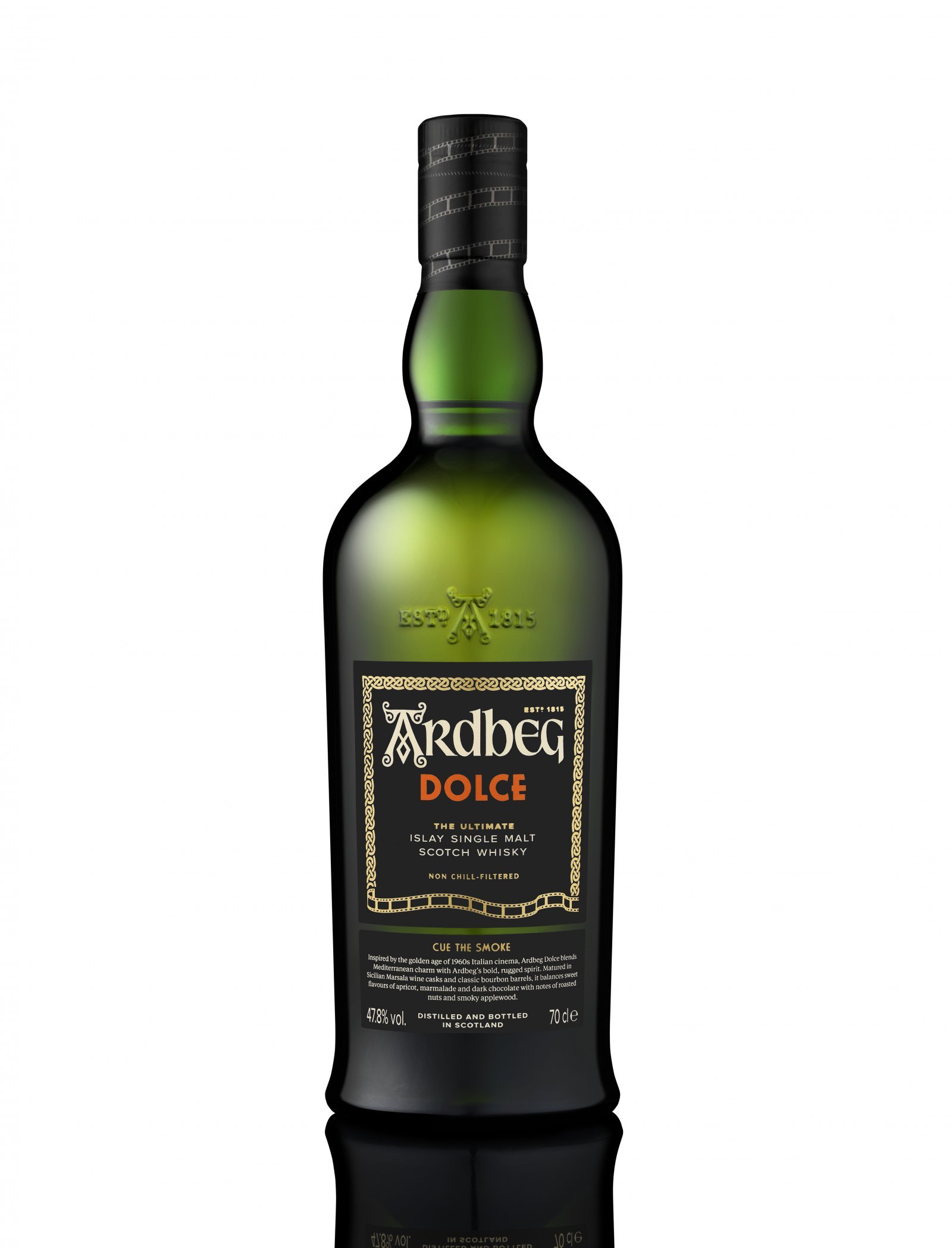 アードベッグ ドルチェは、シチリアとアイラというふたつの島の出合いをテーマに誕生。シチリア島の酒精強化ワインであるマルサラワインの中でも、最も甘美なスタイルであるドルチェの樽で熟成した原酒と、クラシックなバーボン樽由来のアードベッグ原酒をヴァッティング。アプリコットやチョコレートを思わせる芳醇な甘みと、アイラ島ならではの力強くスモーキーなピート香が交差する。