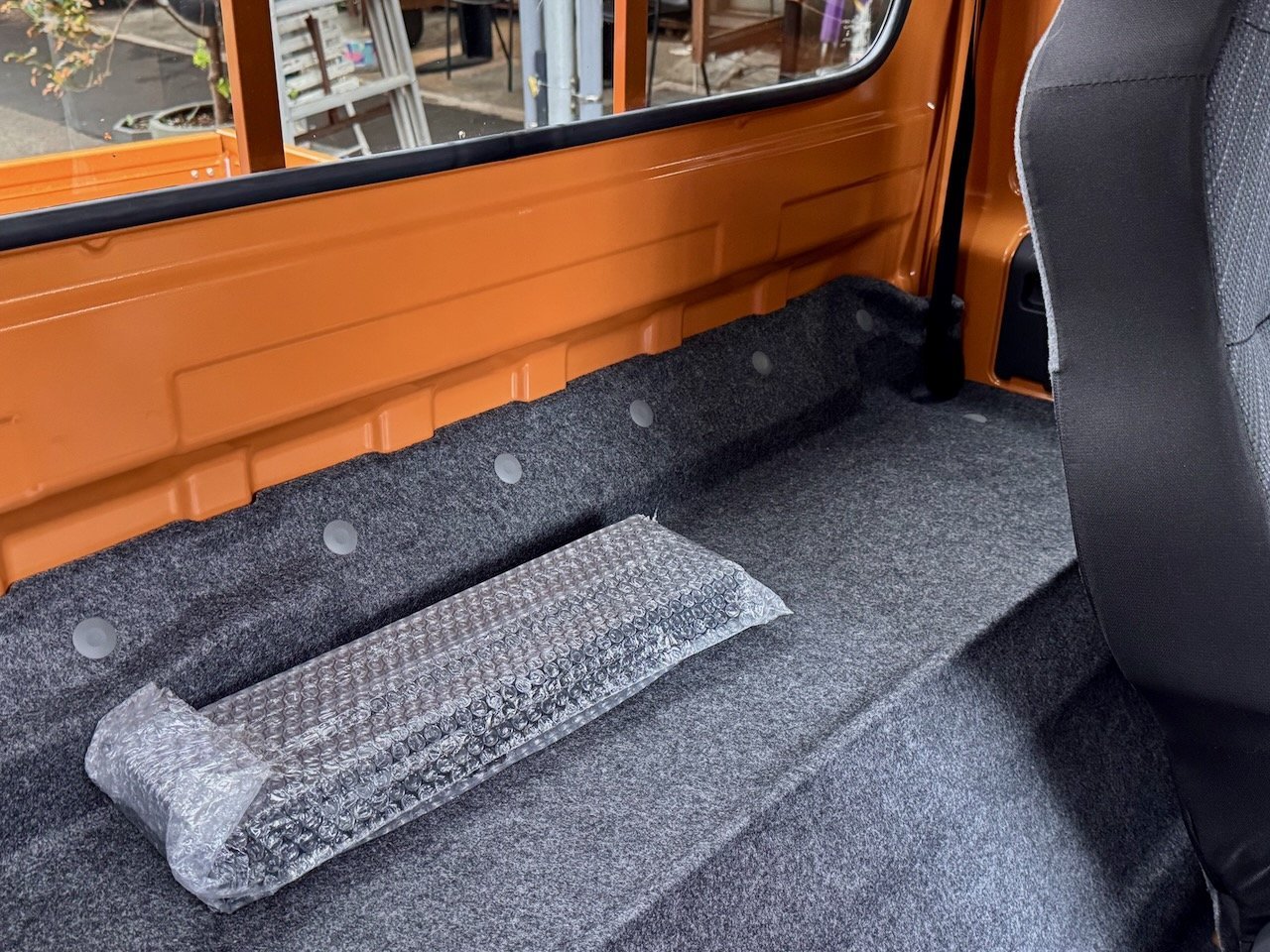 スズキの広報担当者は、スーパーキャリイ設定の背景をこのように説明してくれる。最大の特徴は、シート背後に奥行250mmの荷物置き場を設けたところだ。そのため、中型バックパックだって、バーキンバッグだって、置いておける。
