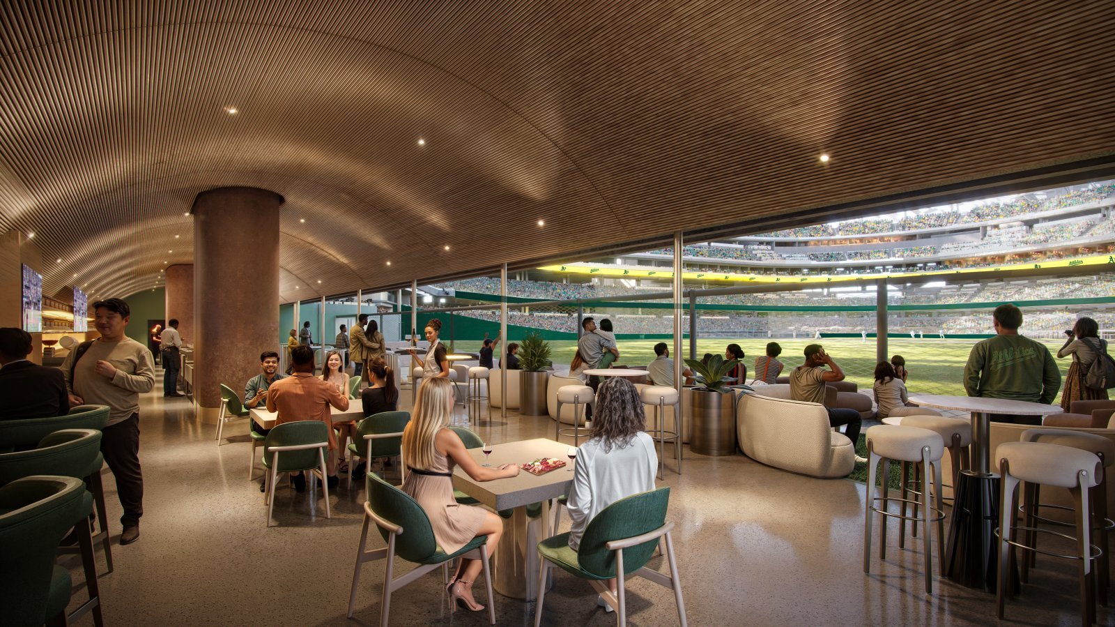 そこからBIGが導き出したのが、上下2層のボウル構造だ。英建築デザイン誌のデジーンはこの構造により、MLBのどの球場よりもホームプレートに近い座席と、最小のファウルテリトリー(ファウルラインから観客席までの空間)が実現すると指摘する。スペクタクルの街ラスベガスに、あえて密度の高い観戦空間を持ち込む、逆説的な設計だ。
